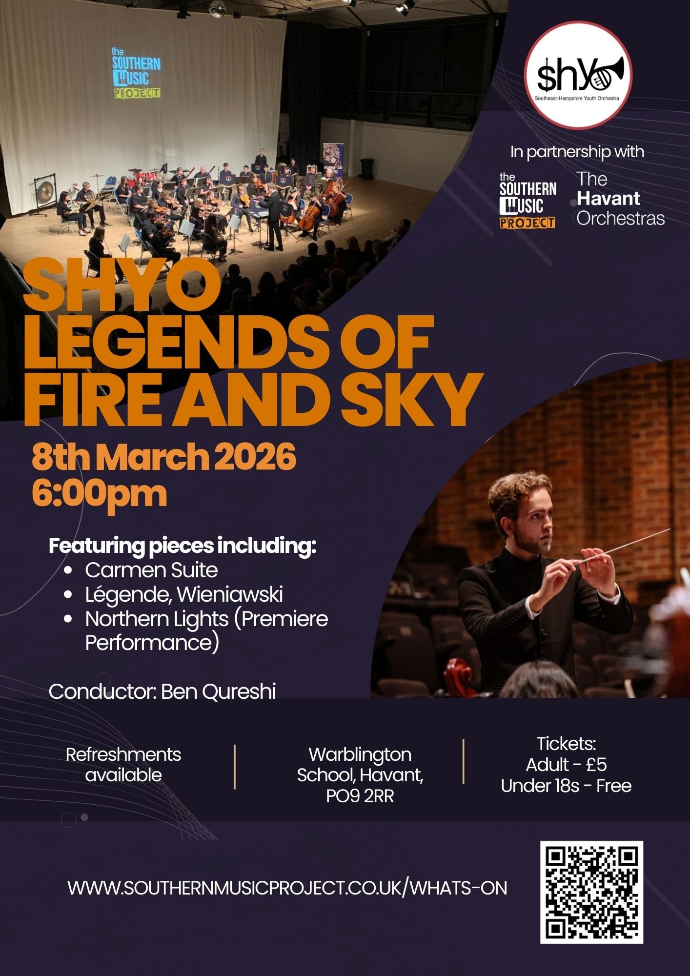 Created by the Southern Music Project CIC and the Havant Symphony Orchestra, SHYO is a student orchestra geared towards students in full-time education and who are Grade 6+. SHYO aims to fill a gap in the region's youth orchestras, providing students with the opportunity to learn and rehearse orchestral repertoire.